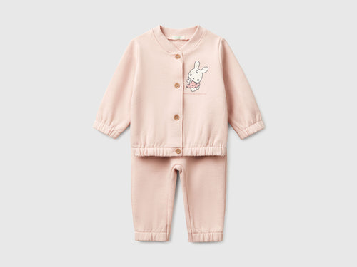Benetton Bebek Toz Pembe Baskılı Bomber Yakalı Üst Ve Beli Lastikli Eşofman Takım