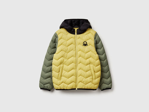 Benetton Çocuk Sarı-Haki Kapüşonlu Mevsimlik Pufa Mont – Logo İşlemeli