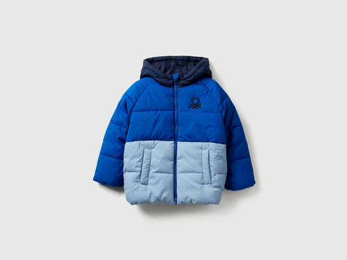 Benetton Erkek Bebek Açık Mavi-Gri Sol Göğsü Logo Yamalı Önü Cepli Kapüşonlu Fermuarlı Mont