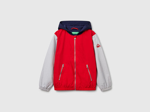 Benetton Erkek Çocuk Kırmızı Mix Kolu Logo Detaylı Astarlı Kapüşonlu Yağmurluk