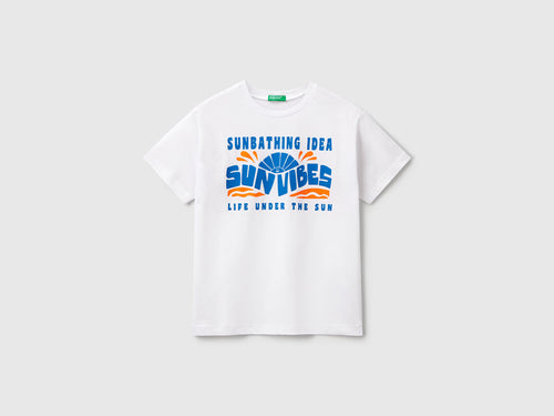 Benetton Erkek Çocuk Beyaz Grafik Baskılı Kısa Kollu Tişört