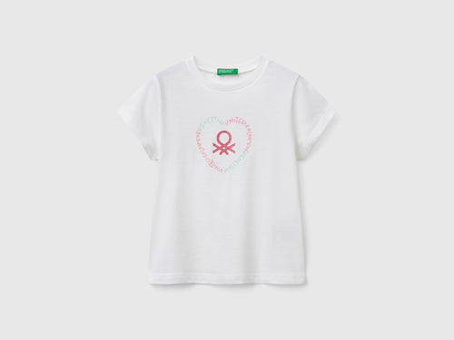 Benetton Kız Bebek Beyaz Simli Benetton Logo Baskılı Tişört