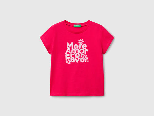 Benetton Kız Bebek Fuşya Grafik Baskılı Kısa Kollu Tişört