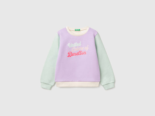 Benetton Kız Bebek Lila Mix Simli Benetton Logo Baskılı Bisiklet Yaka Sweatshirt